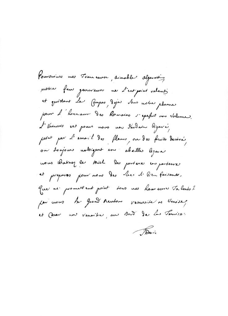 Letter by Frederick the Great, King of Prussia, to Count Francesco Algarotti