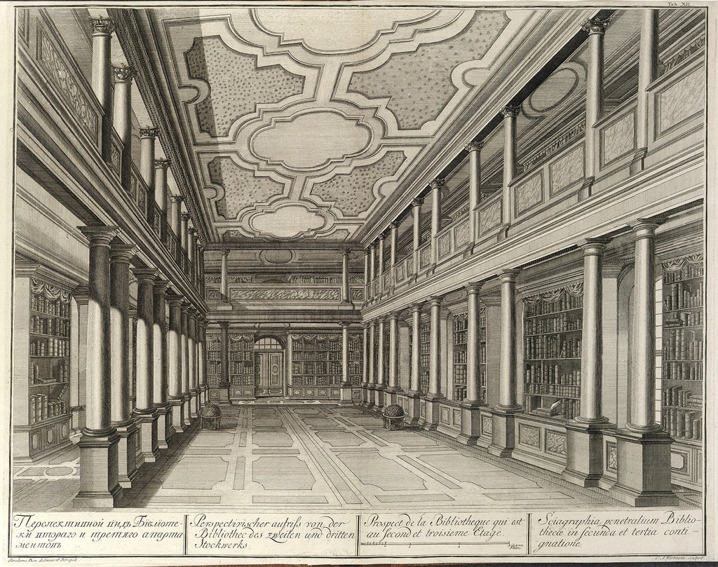 Library (From: The building of the Imperial Academy of Sciences), 1741. Found in the collection of the Museum of Fine Arts Academy, St. Petersburg.