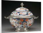 Lidded Bowl; Unknown; Imari, Japan, Asia; porcelain about 1700; mounts about 1717 - 1722; Hard-paste porcelain underglaze blue, polychrome enamel decoration, and gilding; silver mounts