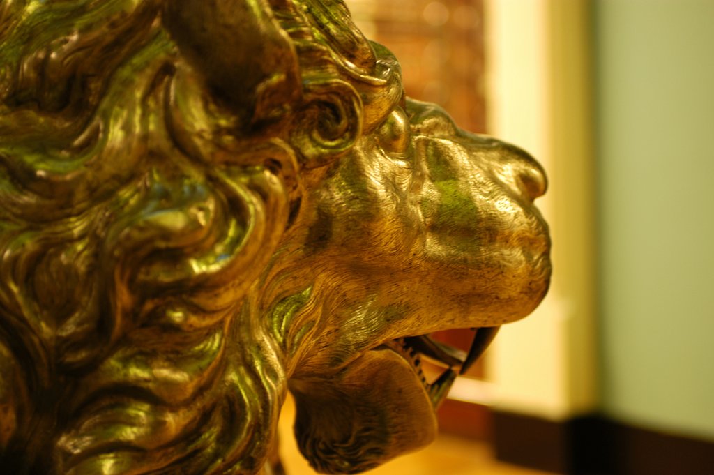 Lion, detail of head, after the 17th century Danish original by Ferdinand Kyblich. Electrotype and silvered copper. Birmingham, England, c.1885.