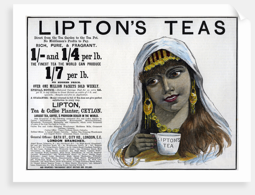 Lipton's Teas advertisement, 1893. Hand-coloured later.