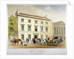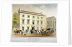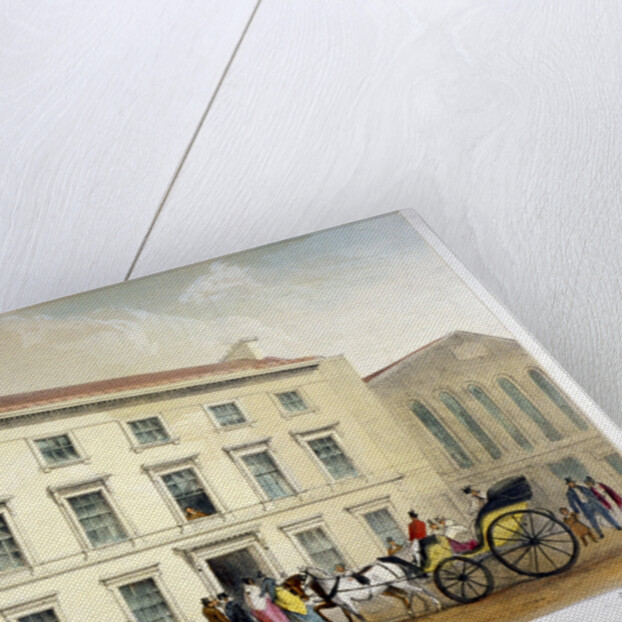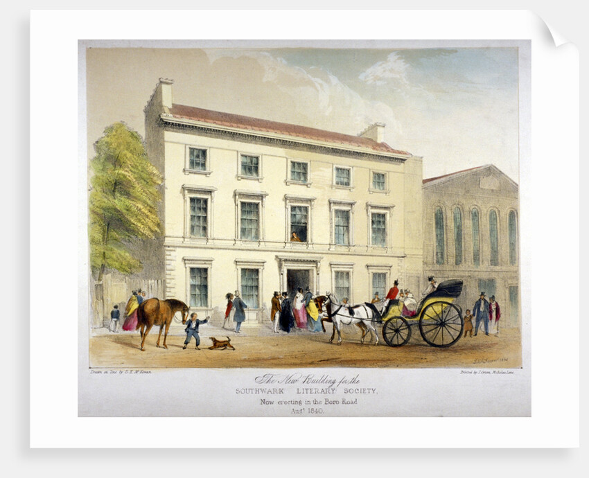 Literary Society building on Borough Road, Southwark, London, 1840. View with figures and a horse-drawn carriage in front.