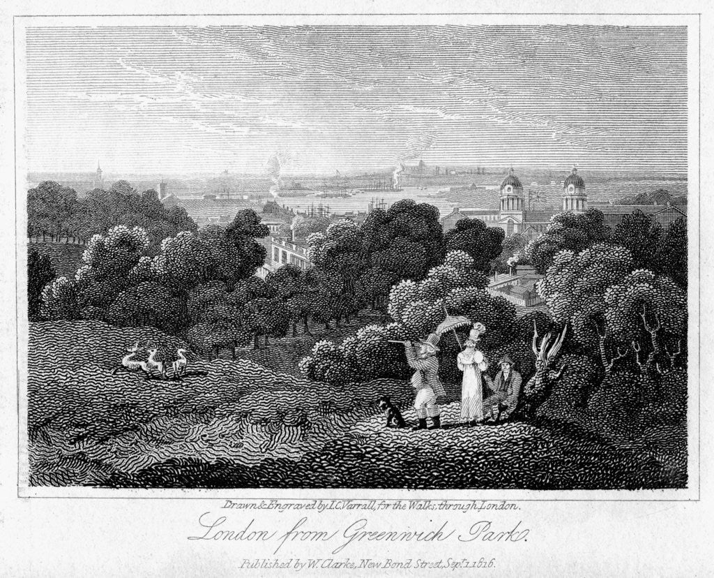 London from Greenwich Park, 1816. The Royal Hospital, Greenwich, designed by Sir Christopher Wren, can be seen to the right of centre.