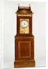 Long Case Musical Clock; Clock case by David Roentgen, German, 1743 - 1807, master 1780, Gilt-bronze mounts by François Rémond, French, 1747 - 1812, master 1774, Clock movement by Peter Kinzing, German, 1745 - 1816, Musical mechanism by Johann Wilhelm Weyl, German, 1756 - 1813; Neuwied, Germany, Europe; 1786; Ash, maple, walnut, and oak veneered with maple and walnut; bronze; gilt-bronze mounts; enameled metal; glass; blued steel