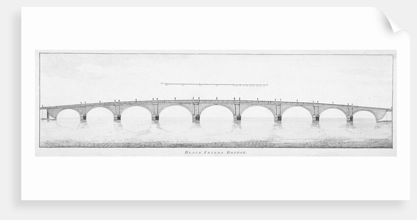 Longitudinal section of Blackfriars Bridge, London, 1766. The first Blackfriars Bridge was designed by Robert Mylne. It was built between 1759 and 1769.