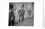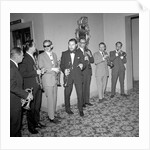 Louis Armstrong (1901-71) with British Jazz Musicians, photo Harry Hammond (1920-2009). Black and white photography. UK, 1960.