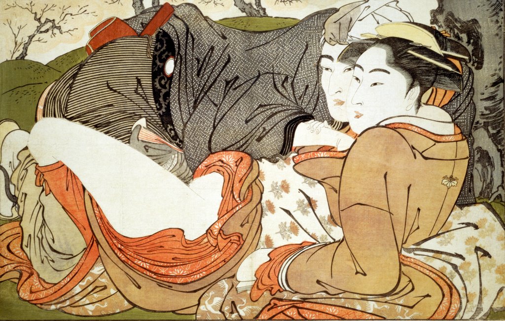 Lovers Resting by a Tree, by Kitagawa Utamaro (1753-1806). Woodblock print. Japan, 1788.