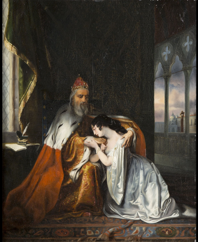 Lucrezia begging her father in law Doge Francesco Foscari to interfere in favor of her husband Jacopo, c. 1850. Private Collection.