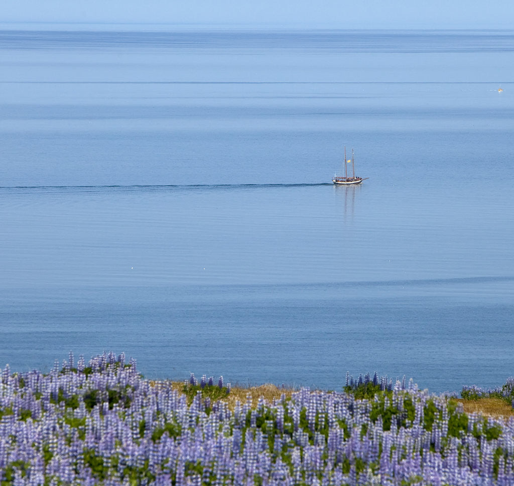 Product images of Lupines and boat, Husavik, Iceland