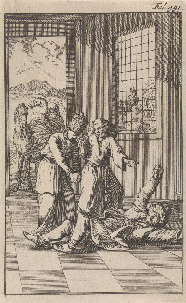 Mahomed falls into raptures at the feet of his wife Kadiga, Caspar Luyken, Timotheus ten Hoorn, 1696