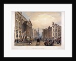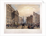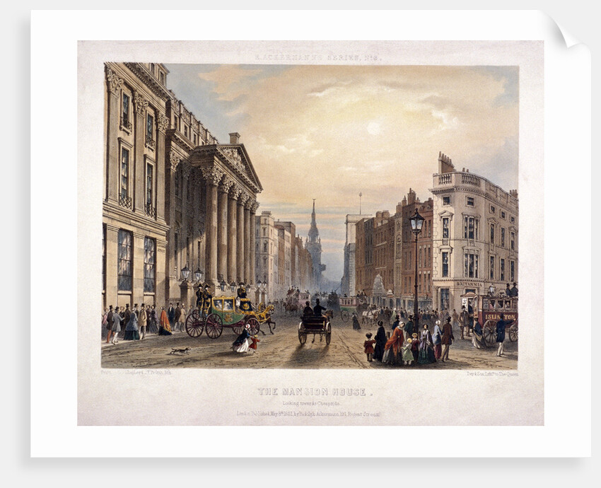 View looking towards Cheapside, London with the Mansion House on the left, 1851; also showing figures and vehicles in the road.