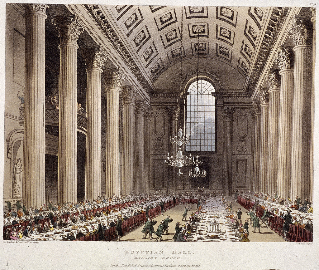 Interior view of the Egyptian Hall in Mansion House, London, 1809 during a banquet.
