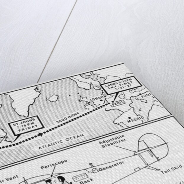 Product images of Map and Diagram of Lindbergh's Trans-Atlantic Flight