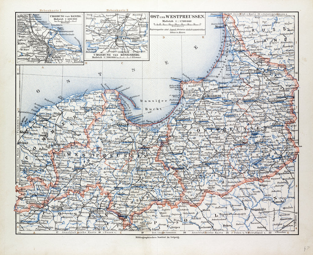 Product details Map of East and West Prussia Königsberg (Kaliningrad Russia) and Danzig (Poland) 1899