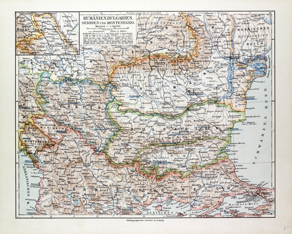 Product details Map of Romania Serbia Bulgaria Montenegro 1899