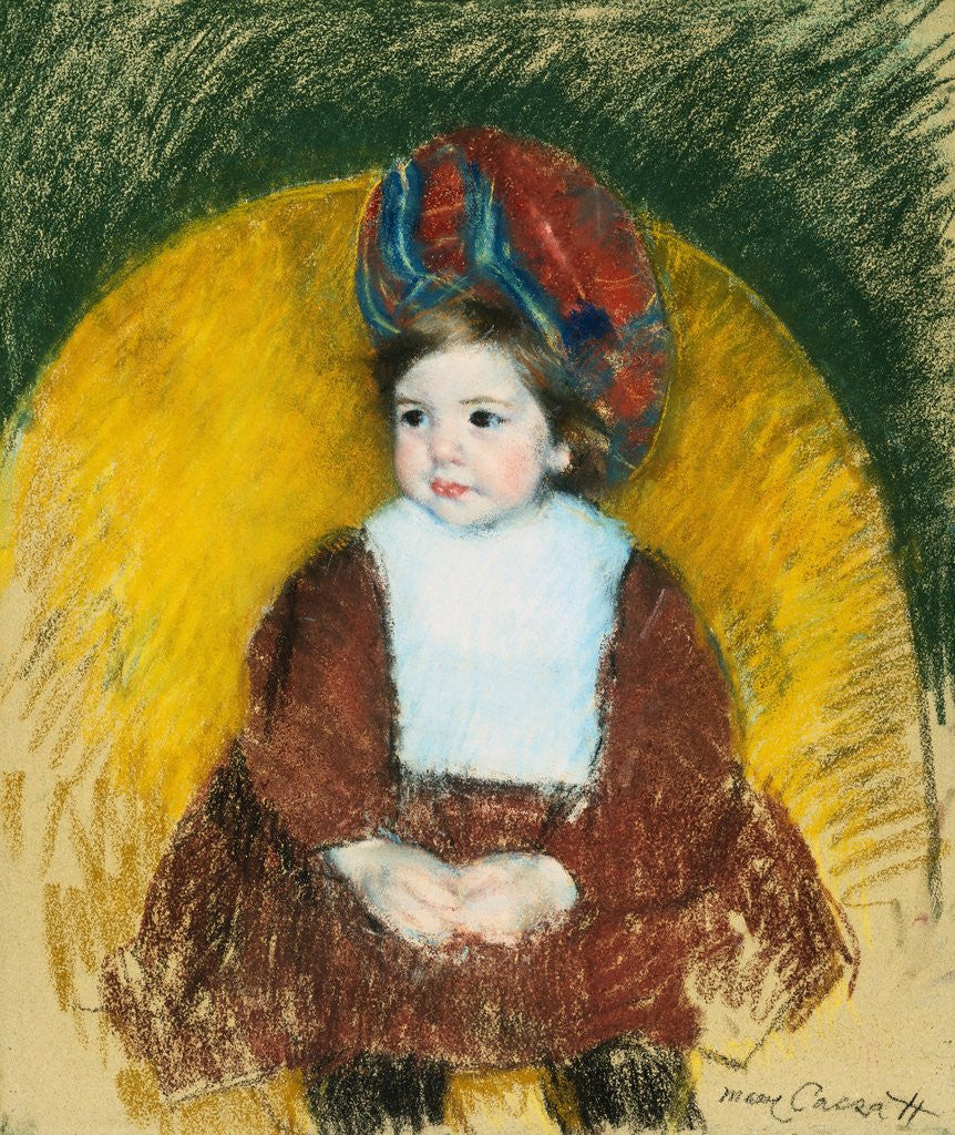 Margot in a Dark Red Costume Seated on a Round Backed Chair (La Petite)