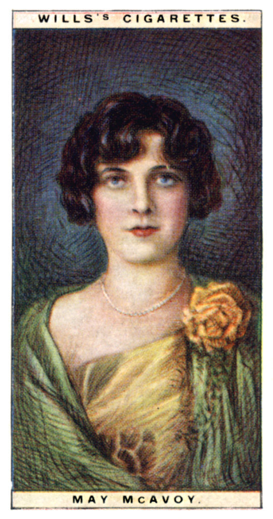 May McAvoy (1899-1984), American actress, 1928. Number 15 (of 25) in the second set of WD & HO Wills' Cigarette Cards entitled Cinema Stars (1928).