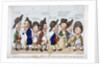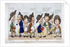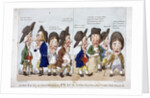 'Men bemoaning peace', London, 1815; four unhappy men at Smithfield and four unhappy men at the Corn Exchange bemoan the effect of peace, with the defeat of Napoleon, on their businesses