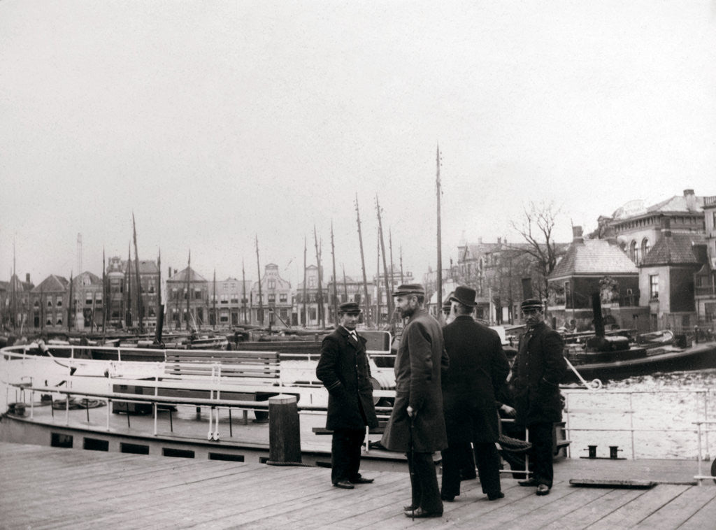 Men by a canal boat, Rotterdam, 1898. Illustration from a book of photographs taken in Holland and Belgium by James Batkin, (1898).