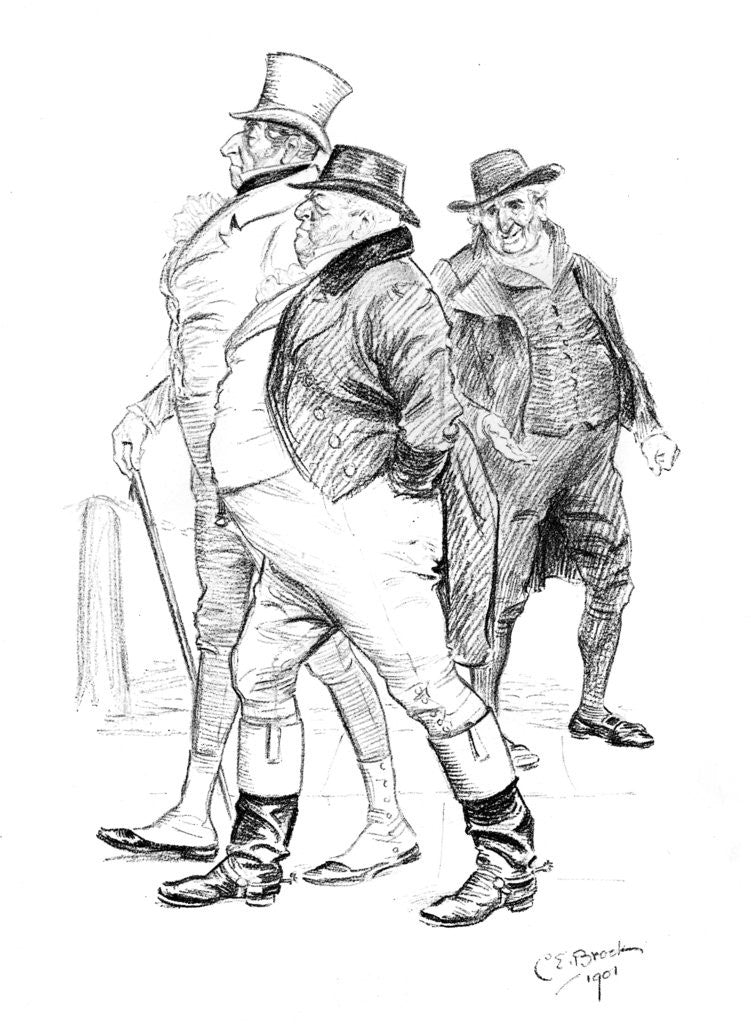 Men in 19th-century dress, 1901. Illustration from The Process Year Book, A Review of the Illustrated Arts. published by AW Penrose & Co, (London, 1901).