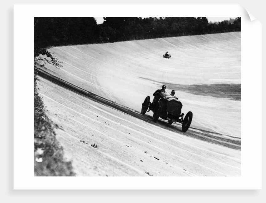 Mercedes on the banking near Members' Bridge, Brooklands, Surrey, 1920.