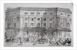 Mercers' shop, Regent Circus, Westminster, London, c1850. View of the premises of Sowerby, Drayson and Company, silk mercers, in the north-east quadrant of Regent Circus, now Oxford Circus. Traffic is in the foreground.