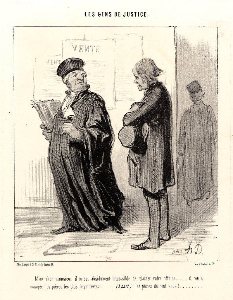 Honoré Daumier (French, 1808 - 1879). Mon cher Monsieur...Impossible de plaider votre affaire, 1846. From Gens de Justice. Lithograph on white wove paper.