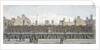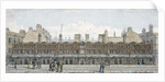 View of Salters' Almshouses in Monkwell Street, London, 1818, with figures on the street.