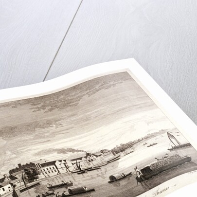 Mr Smith's house at Battersea, London, c1755. The house of a Mr Smith, looking up the River Thames, with sailing boats and cargo vessels on the river. The buildings are reflected in the water.