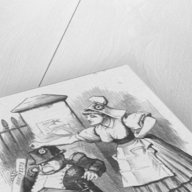'Napoleon Pour Rire!!', 1883. This cartoon shows France 'bonneting' the unfortunate Prince Jerome Napoleon - 'Plon-plon', as he was known. He was the head of the Bonaparte family, and was chosen to succeed Napoleon III, should the Bonapartist Party ever regain power, pending the majority of his son. Now that Leon Gambetta, the former Head of the Third Republic, had died, Prince Jerome had issued a Proclamation denouncing the Republic and claiming that he was the only fit person to lead France. This led to him being arrested and held in custody for a short time. Punch, however, said he should simply have been laughed at for his pretensions. From Punch, or the London Charivari, January 27, 1883.