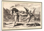 Anonymous after Hendrick Goltzius (Dutch, 1558 - 1617). Neptune Pursuing Coronis, Who Is Changed into a Crow, ca. 1590. From Metamorphoses. Engraving on wove paper