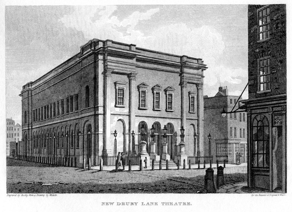 New Drury Lane Theatre, Westminster, London, 1813. Completed in 1812, this building designed by Benjamin Dean Wyatt replaced the previous theatre by Henry Holland that was destroyed by fire in 1809.