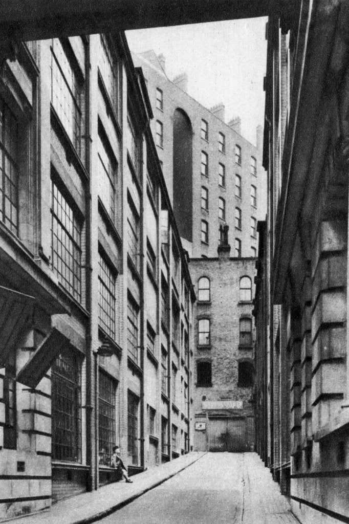 Newcastle Street, London, 1926-1927. Newcastle Street, near the Holborn viaduct, going up to Farringdon Street. From Wonderful London, volume II, edited by Arthur St John Adcock, published by Amalgamated Press (London, 1926-1927).
