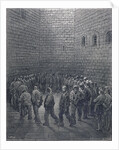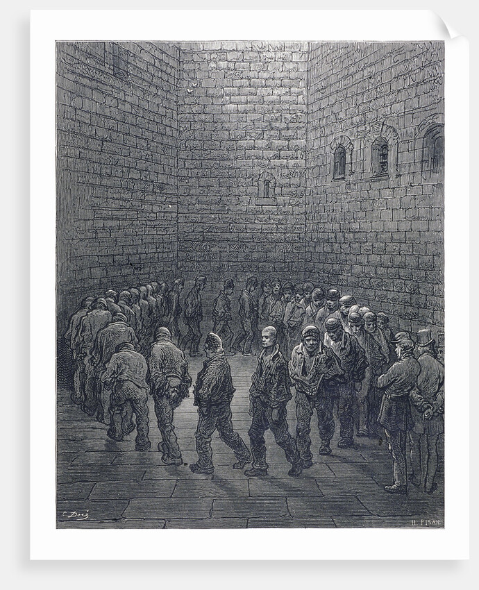 'Newgate-Exercise Yard', 1872. View of prisoners excercising at Newgate Prison, Old Bailey, London. Taken from London: A Pilgrimage by Blanchard Jerrold and Gustave Doré. A Pilgrimage was a comprehensive portrait of London, but although the book was a commercial success many of the critics disliked it. Several were upset that Jerrold and Doré had concentrated on the poverty that existed in London.