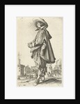 Noble man with hat, seen on the left, Jacques Callot, print maker: Anonymous, Frederik de Wit possibly, 1630 - 1690