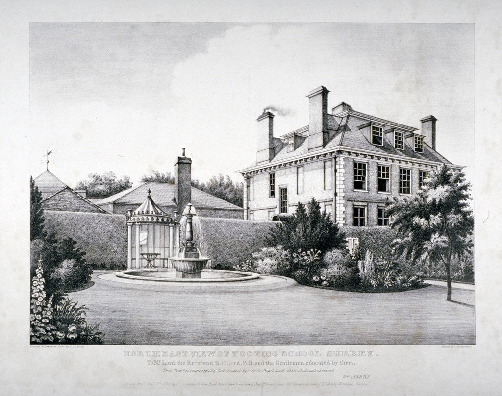 North-east view of Tooting School, with a garden in the foreground, Wandsworth, London