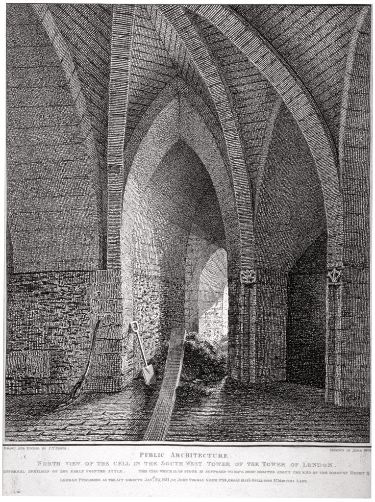 North view of the cell in the south-west tower of the Tower of London, 1802.