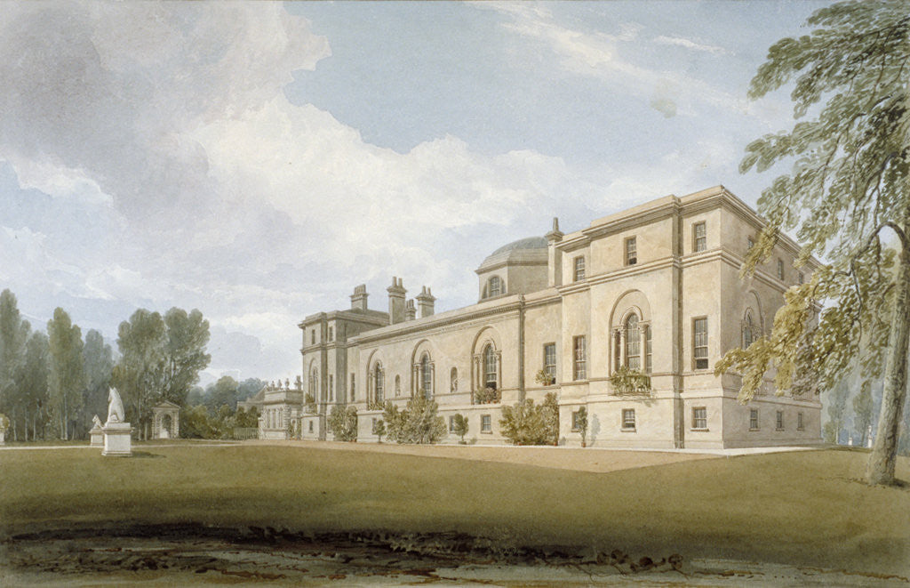 North-west view of Chiswick House, Chiswick, Hounslow, London, 1822. Chiswick House is a Palladian villa built in 1725-1729 for the Earl of Burlington (1694-1753). He used it to display his art collection and to entertain.