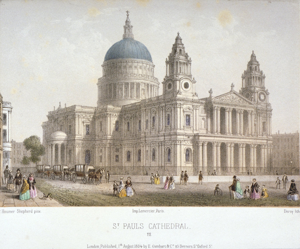 North-west view of St Paul's Cathedral with figures walking in front, City of London, 1854.