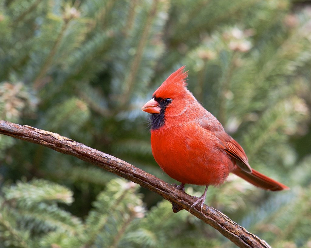 Northern cardinal perching on branch, McLeansville, North Carolina, USA