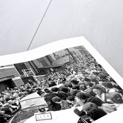 Premier of 'A Hard Day's Night', crowds gather to catch sight of The Beatles before the Northern premier starts in Liverpool. Police try to keep fans away from the car as The Beatles arrive/ 10th July 1964.