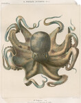 'Octopus vulagaris' [Common octopus] by Antoine Toussaint de Chazal. Marine zoological study of the common octopus (Octopus vulgaris). The cephalopod is presented as a single study, as in life. Plate 11 in the section 'G.Poulpe' from the book Histoire naturelle generale et particuliere des cephalopodes acetabuliferes vivants et fossiles.., by André Étienne d'Audebert de Férussac (1786-1836) and Alcide Charles Victor Marie Dessalines d'Orbigny (1802-1857) (Paris, 1848). Various inscriptions, including below: 'Verany de Nice, delin. L de Benard Blanchard et lapid. delin. O.Vulgaria, Lam. Hors de l'eau et marchant sur la plage.'Original: lithograph, 1848