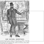 'Our Natural Advantages', 1888. The French visitor to London for the summer season of 1888 says that the Great British weather should protect the country from any invasion. There is, though, an interesting reference to the prospect of a Channel Tunnel sometime in the future. From Punch, or the London Charivari, August 4, 1888.
