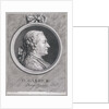 Oval portrait of the actor David Garrick wearing a short wig, with surround