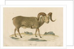 Zoological study of the Snow sheep, or Siberian big horn sheep (Ovis nivicola), native to the uplands of north-eastern Siberia. Plate 1 from the book Zoologischer Atlas, enthaltend Abbildungen und Beschreibungen neuer Thierarten wahrend des Flottcapitains von Kotzebue zweiter Reise um die Welt..., by Friedrich Eschscholtz (Berlin, 1829). Inscribed 'E. Bomer del. J.Gumpel jun. Sc. Ovis nivicola.' Johann Friedrich Eschscholtz (1793-1831) Livonian physician, botanist and zoologist, was naturalist aboard two expeditions led by Otto von Kotzebue (1787-1846). The Rurik expedition 1815-1818 and the Predpriaetie 1823-1826 both circumnavigated the world and collected scientific specimens. These are from the second expedition.