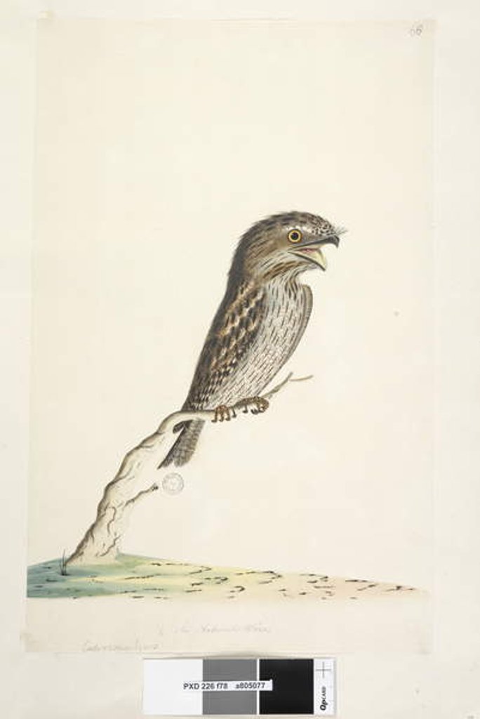 At lower centre in different hand 1/2 the natural size Tawny Frogmouth Podargus strigoides, 1791-92