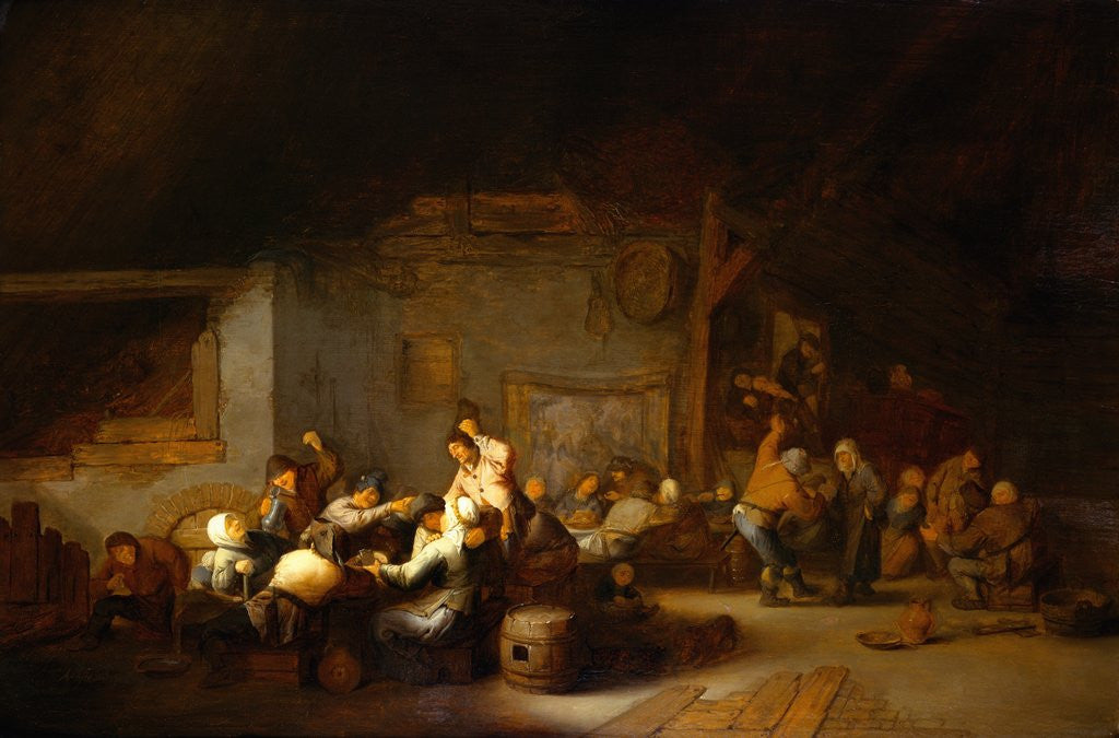 Product details Painting of a Barn Interior With Boors Carousing at a Wedding