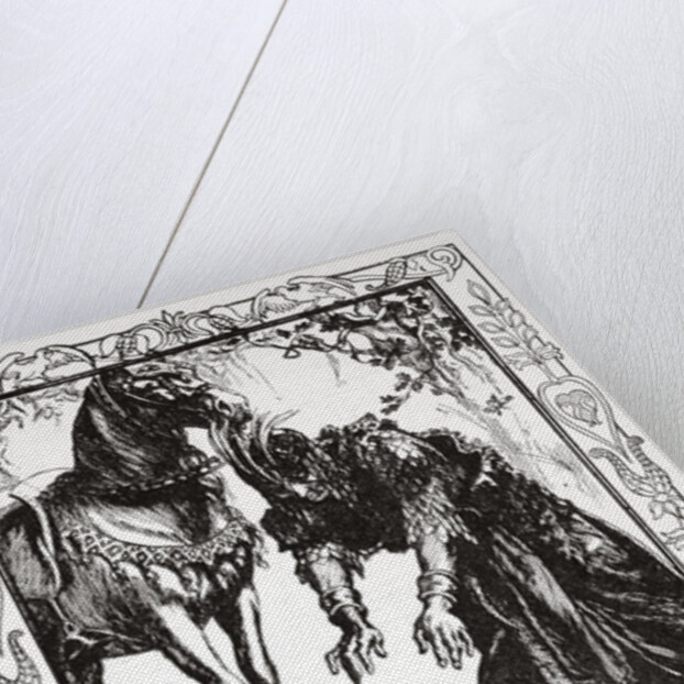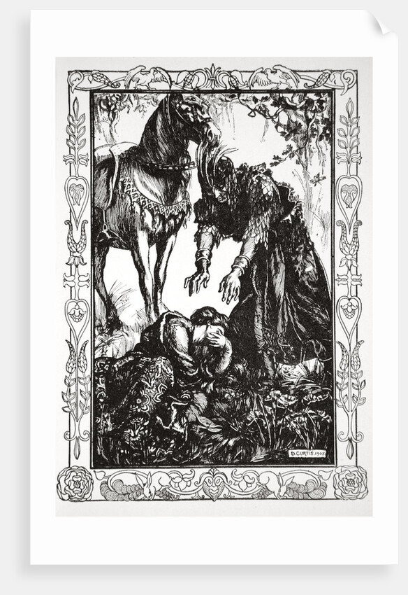 'Palamides appeared before her', 1905. Palamides was in love with Isolde, which brought trouble between Tristan and Palamides. An illustration from Stories of King Arthur and the Round Table by Beatrice Clay, 1st Edition, 1905.