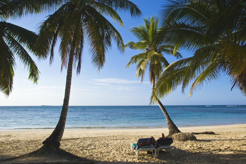 Palm trees on beach, Las Terrenas, Samana Peninsula, Dominican Republic