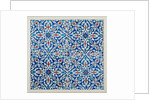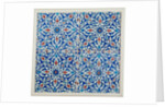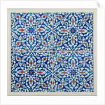 Panel of four tiles. Fritware with polychrome underglaze painting of fine interlacing floral arabesques. Iznik, Turkey, c.1570.